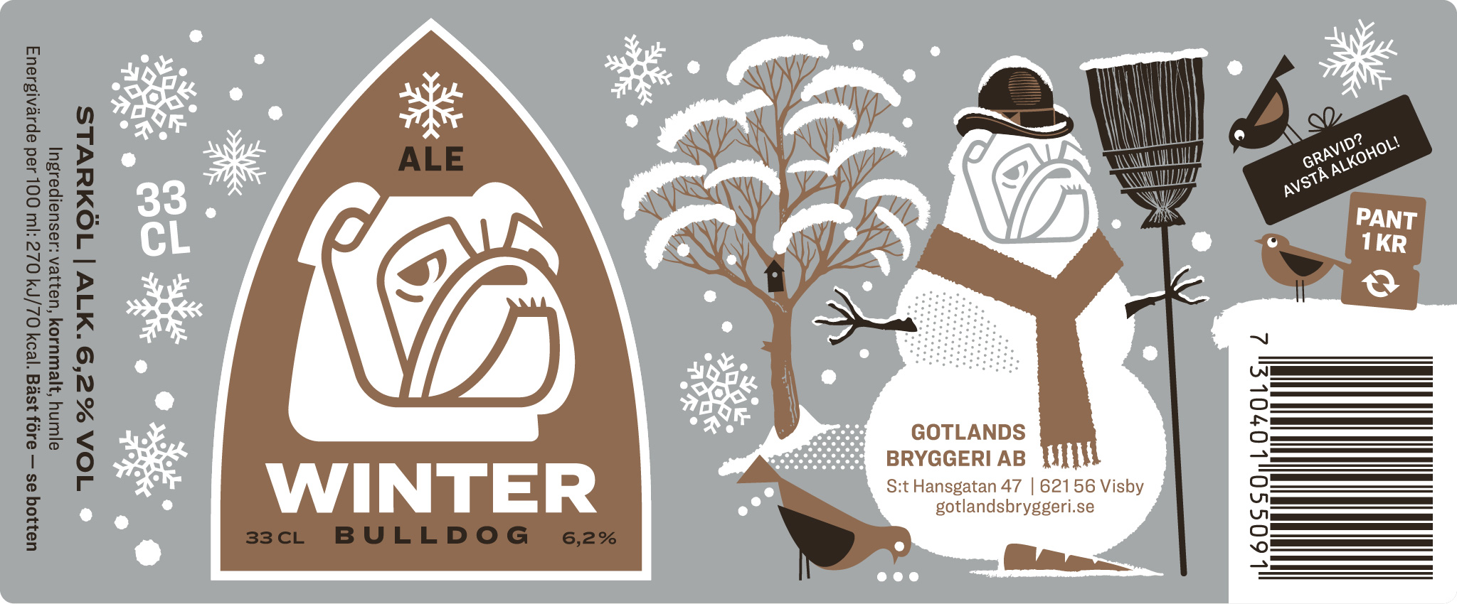 Winter Bulldog är en mörk, kraftfull och kryddig upplevelse. Med sin lite högre alkoholhalt och stora runda smak värmer den lika gott som en ylletröja i vintermörkret.